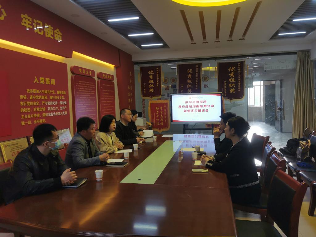 为进一步推进产教融合、校企协同育人工作,拓宽学生就业通道,2024年3月21日下午,数字商务学院与北京首航地面服务公司开展就业实习洽谈会。