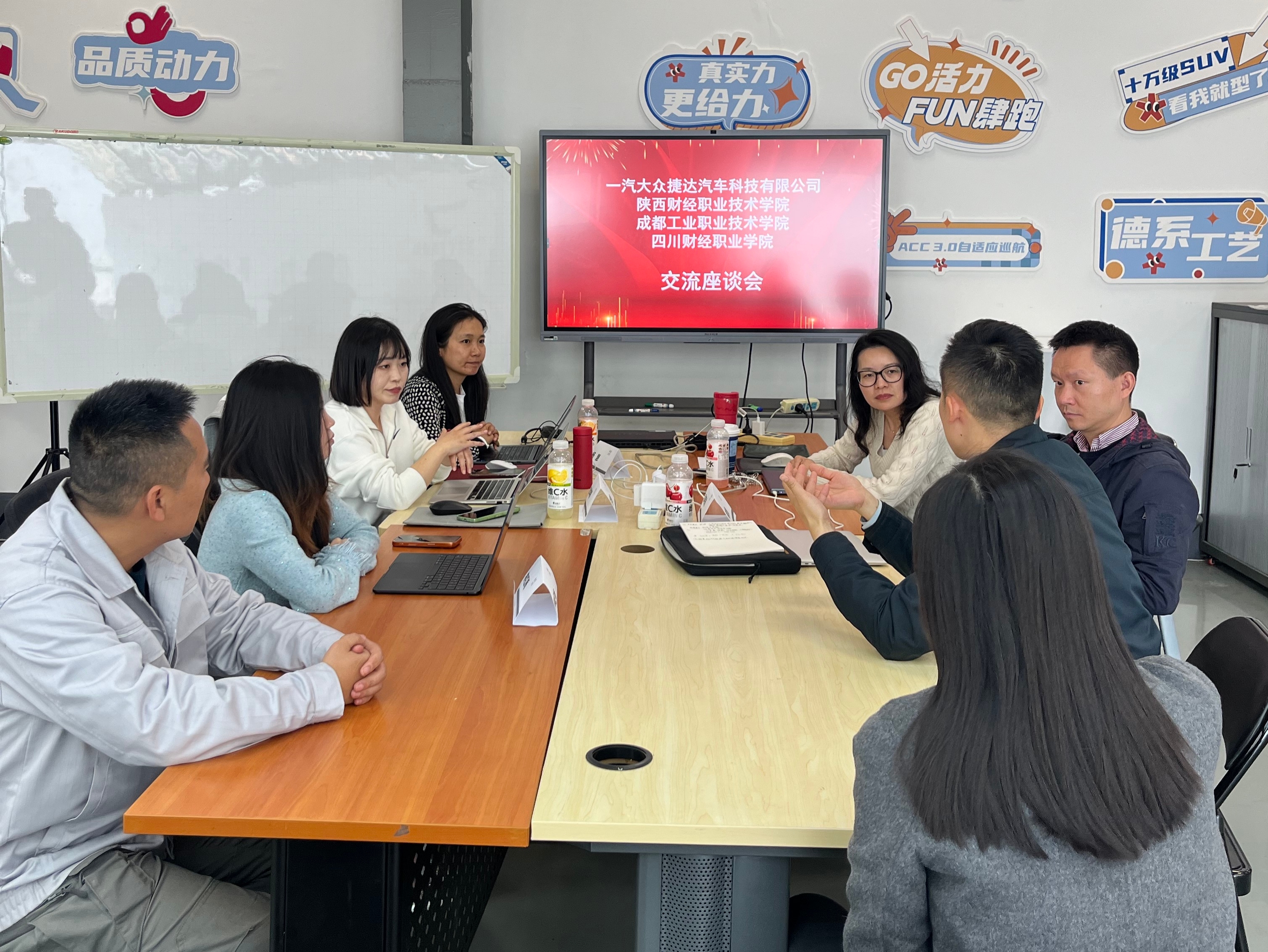 随后,四川财经职业学院、成都工业职业技术学院代表先后发言,分别介绍了各自学校捷达项目班的建设情况、办学经验及遇到的问题,并围绕人才培养方案优化、课程资源共建、学生实习管理、就业渠道拓展等内容与企业及陕西财经职业技术学院展开交流探讨。三校代表一致表示,将以此次座谈会为契机,加强校际联动、深化校企协同,借鉴彼此办学优势,依托一汽大众捷达品牌资源,不断完善项目班育人体系,提升人才培养质量,助力学生高质量就业。