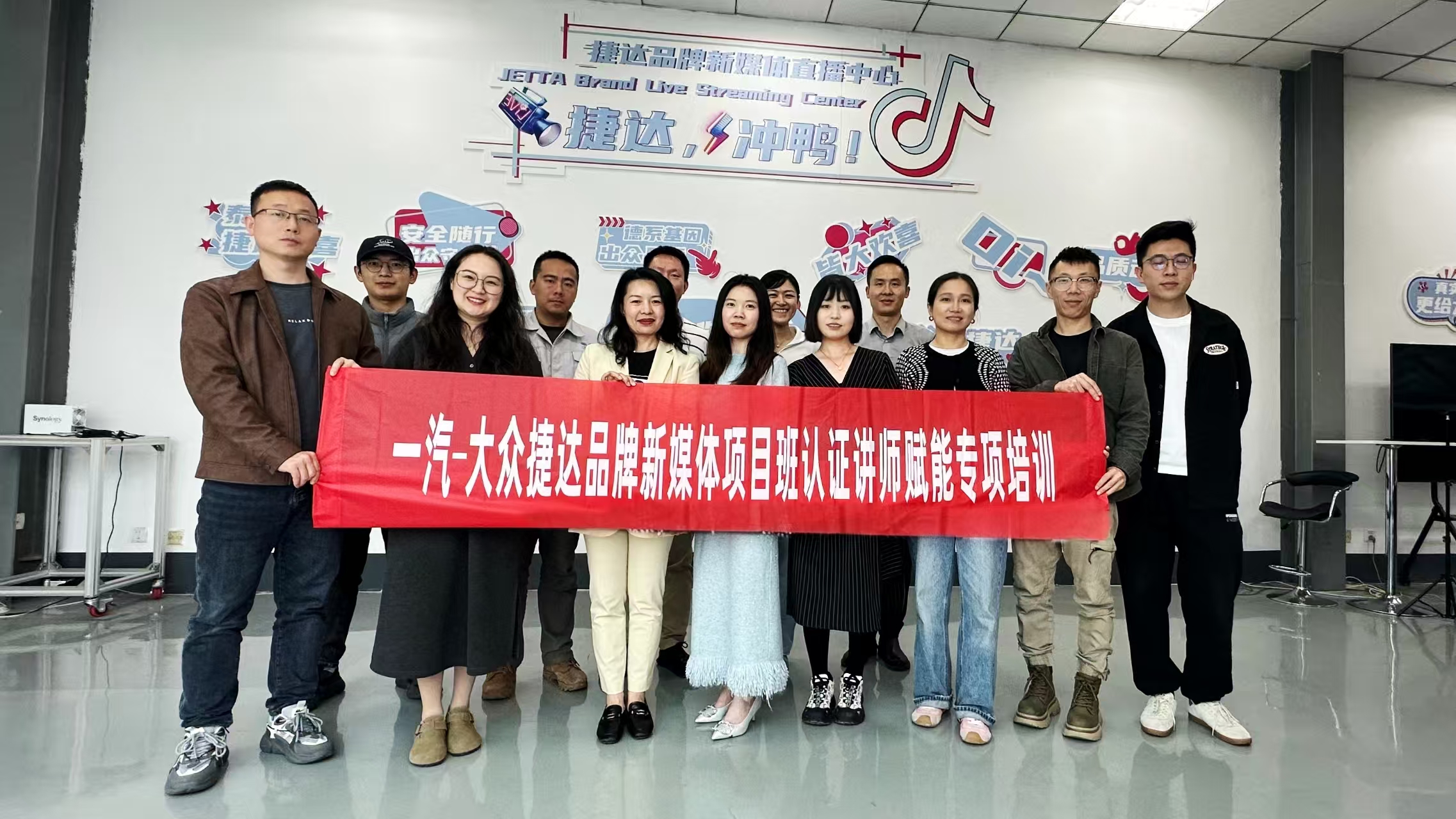 为深入推进产教融合、校企合作,提升网络营销与直播电商专业教师的实践教学能力,精准对接汽车行业新媒体营销人才需求,近日,我院电子商务教研室杨慧、贺华婷两位老师赴一汽大众汽车科技有限公司参加2026年捷达品牌新媒体合作院校认证讲师赋能专项培训,并顺利完成培训汇报总结。