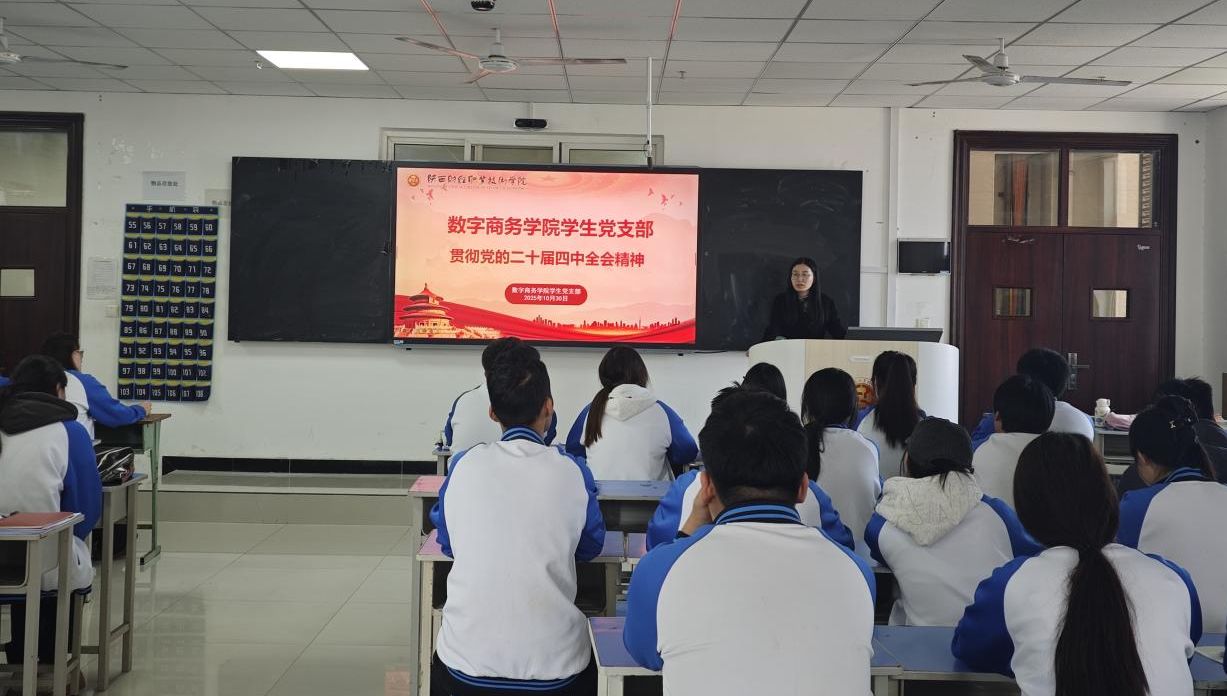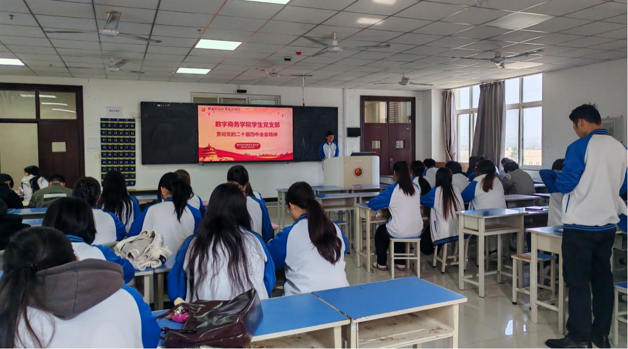 为深入学习宣传贯彻党的二十届四中全会精神,引导广大入党积极分子深刻把握全会重大意义与核心要义,10月30日,数字商务学院学生支部组织全体积极分子在教学楼614教室开展了二十届四中全会精神专题理论学习会。