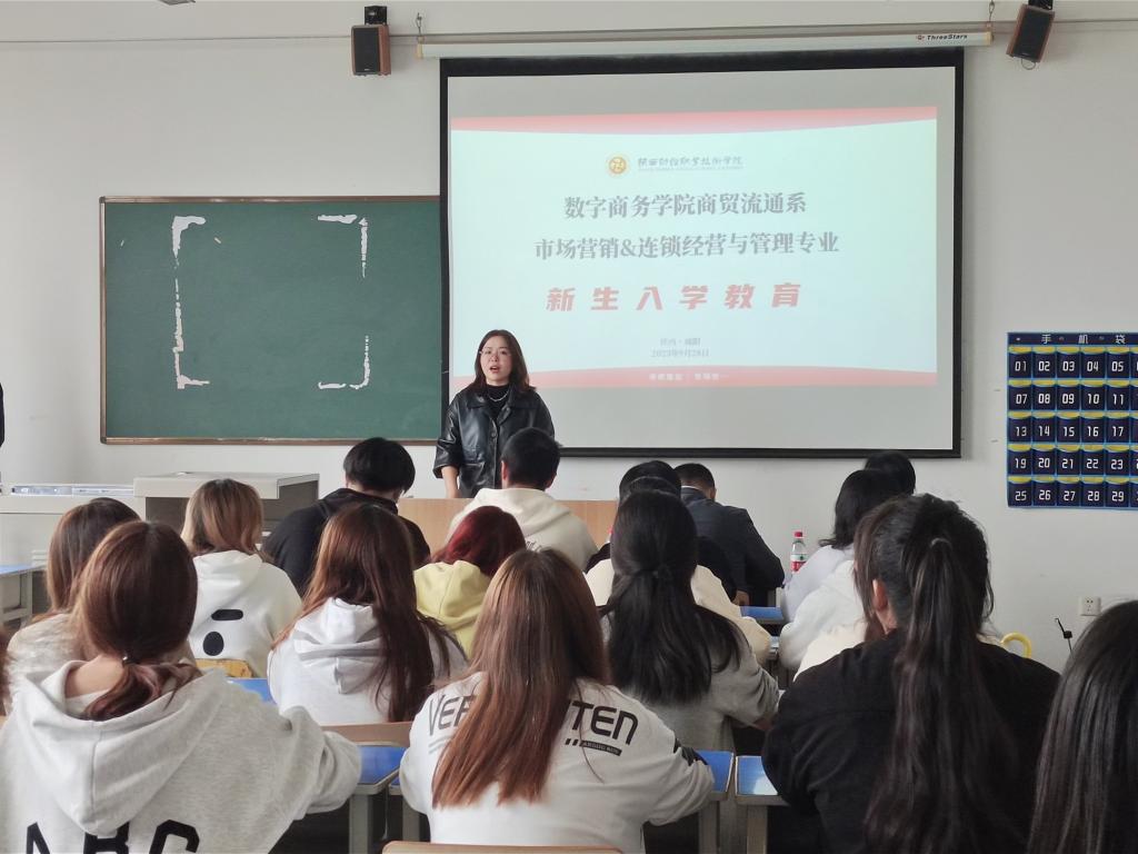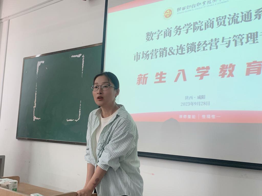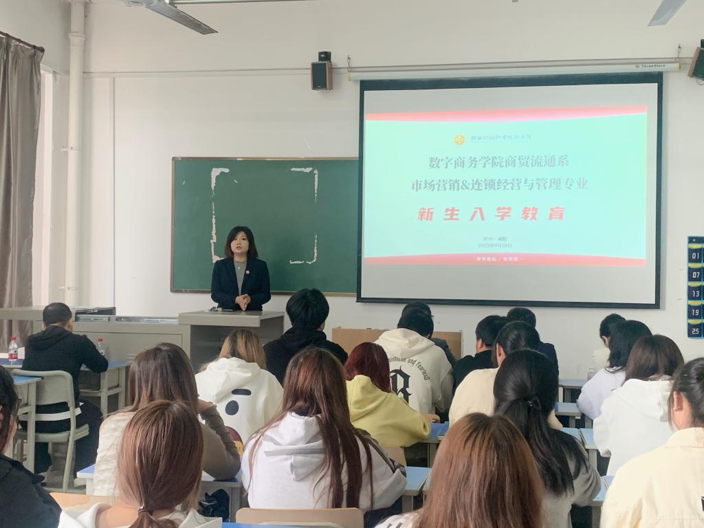 秋风送爽,丹桂飘香。2023年9月28日上午,数字商务学院商贸流通系市场营销专业成功开展2023级新生入学教育。参加活动的有数字商务学院院长董媛、连锁经营与管理专业负责人刘振华、市场营销专业负责人吴红阳,市场营销专业田睿、崔炬、刘淼、张晓妮老师,企业出席的导师有陕西境商房地产营销策划有限公司总监刘金柱、咸阳泾渭茯茶有限公司人事主管张雪玲,以及22级市场营销专业优秀学生代表粟瑞和23级市场营销、连锁经营与管理专业的所有新同学们。