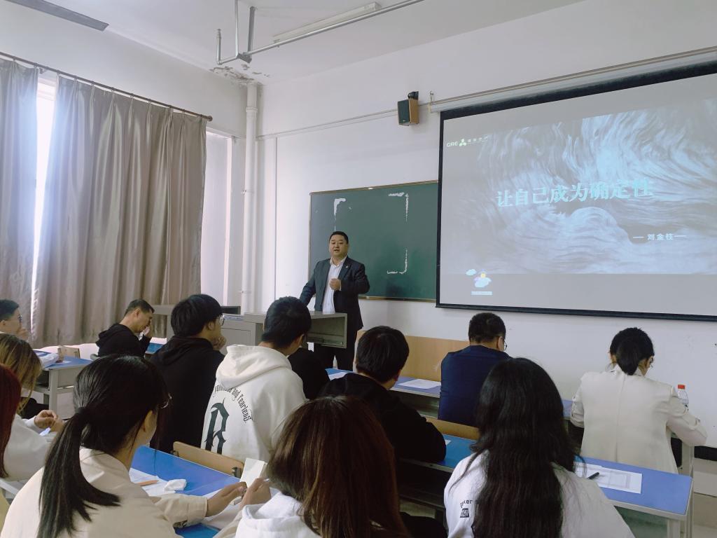 活动开始,董院长为同学们介绍了营销专业的发展历程,希望新生们保持积极态度对待学习及培养营销创新思维,鼓励同学们在校掌握办公应用软件助力职业技能养成,同时培养一个兴趣爱好拓展自我。田睿老师为新生们分享了市场营销专业的了解与认知,也强调了市场营销专业的就业前景,并鼓励学生注重实践,积累经验。刘金柱总监以《让自己成为确定性》为题,为新生们分享了自己的成功经历并勉励大家勇于试错,坚持学习,勇敢追梦。张雪玲主管介绍了公司在市场营销专业方面的经验及市场需求,给新生们一个新的平台机会。最后,22级市场营销专业优秀学生代表粟瑞同学分享自己宝贵的比赛经验,告诫同学们珍惜时间,积极参与各项活动并养成良好的学习和生活习惯。