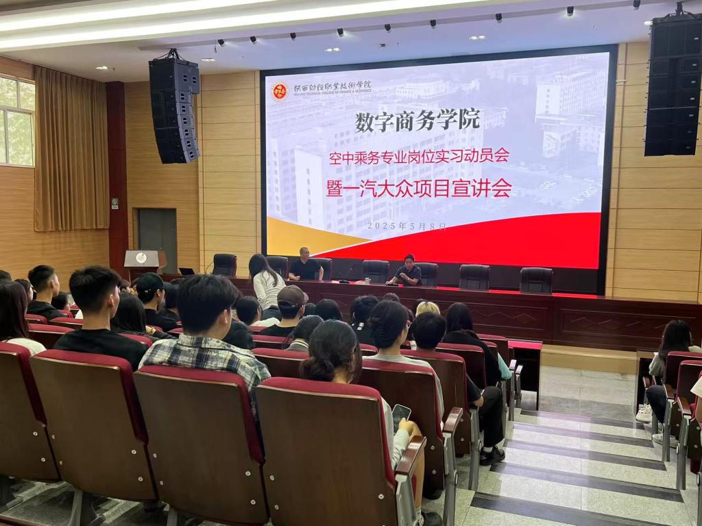 在动员会上,介绍了一汽大众项目,学生们积极提问,就实习安排、岗位适应、职业发展等方面提出了自己的疑问和困惑,现场气氛热烈而融洽。通过面对面的交流,学生们不仅消除了心中的疑虑,还增强了实习的信心和动力。