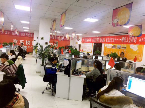陕西财经职业技术学院经济与金融管理系物流管理和电子商务专业2016年与江苏京东信息科技有限公司合作,建立陕财-京东校园实训中心。双方以共建、共用、共管的方式,按照真实的职场办公环境进行布局,设有72个工位,安装有72台高配置、双网络覆盖的电脑,每年可接收300人次进行上岗操作实战。