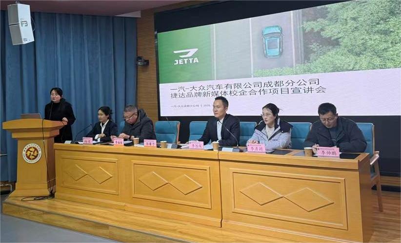 随后,一汽-大众汽车有限公司成都分公司人才招聘经理李陈琛详细解读了捷达品牌新媒体校企合作项目的核心亮点与培养模式,并正式发布了第二期招生与培训计划。他表示,一汽-大众捷达品牌将持续深化与学院的合作,共同构建贴近行业、注重实战的新媒体人才培养体系,助力学生实现从校园到职场的顺利过渡。