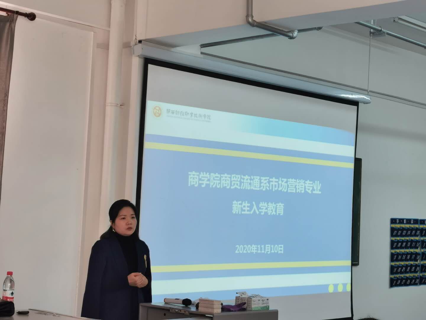 2020年11月10日下午,商学院开展了2020级市场营销专业新生入学教育。本次入学教育我们有幸邀请到了陕西境商集团培训经理强博文老师为大家主讲,商学院院长董媛、境商集团人力资源部张丽娜、张喜莹、市场营销教研室部分教师以及2020级市场营销专业的120余名学生参加了此次会议。会议由市场营销教研室主任王福荣主持。