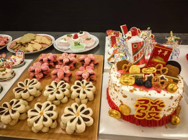 活动现场暖意融融,香气四溢。中西面点工艺专业的同学们将课堂所学付诸实践,精心制作了多款兼具颜值与口感的甜品佳作 —— 每一款都凝聚着同学们的用心与创意,更承载着对老师们悉心教导的感恩之情。从食材甄选、配方调配到造型设计、烘焙定型,同学们在专业教师的指导下,将理论知识与实操技能完美融合,用娴熟的技艺呈现出专业的课程成果,让整个教职工餐厅都沉浸在甜蜜的氛围之中。