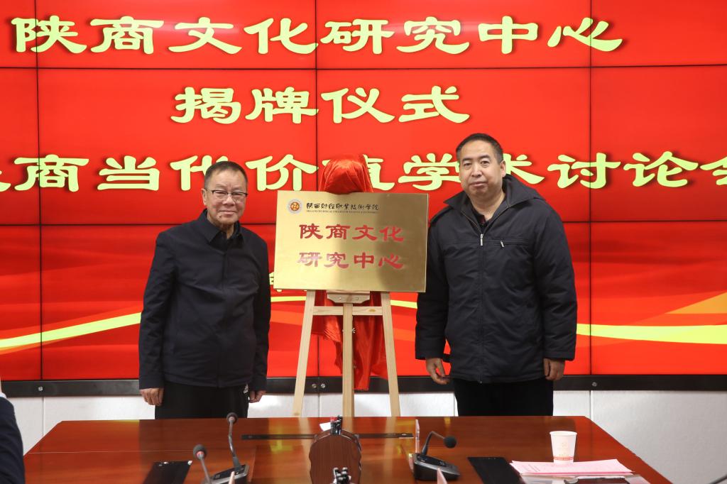 隆隆掌声中,党委委员、副院长王勇与李刚教授共同为陕西财经职业技术学院陕商文化研究中心揭牌,王院长向三位专家颁发聘书。随后与会人员合影留念。