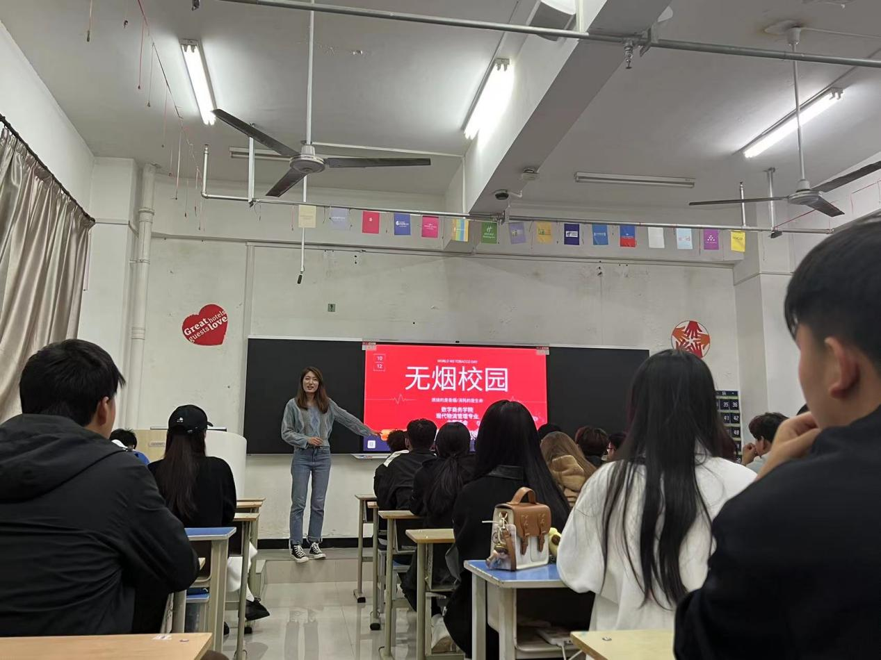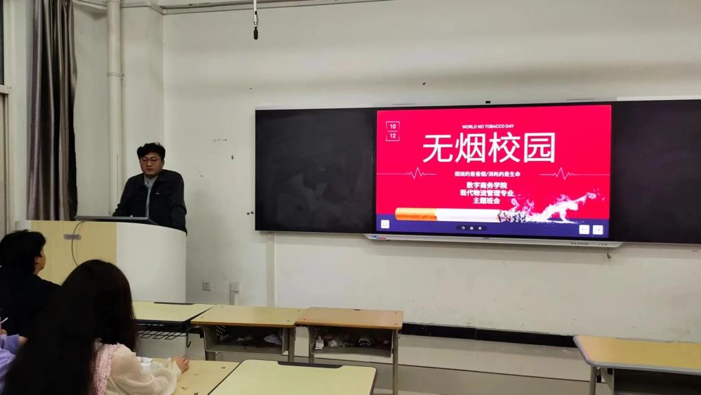 为进一步提升校园环境文化,强化环境育人效果,提高学生综合素养,巩固“厚德育人”工程成果,营造健康安全的学习氛围,打造清新文明和谐的育人环境。10月12日晚,数字商务学院组织22、23级班级召开 “无烟校园”主题班会,此次活动由22级、23级全体辅导员、班主任及全体在校学生参加。